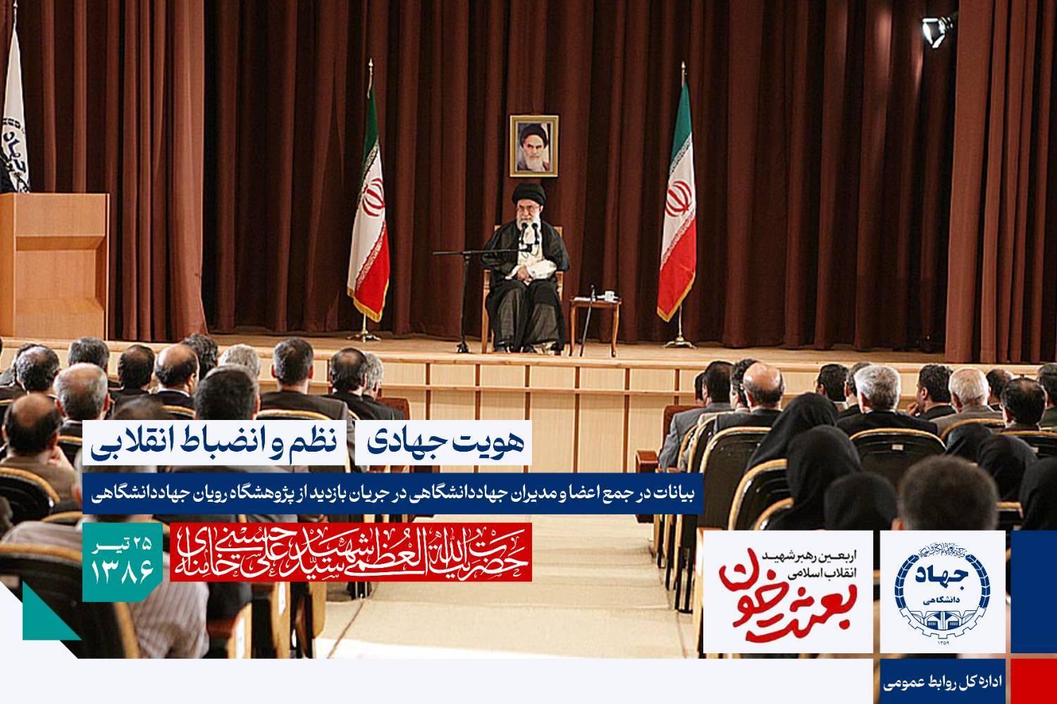 سعى کنید هویت جهاد، تغییر پیدا نکند... نگذارید نهاد جهاددانشگاهى، تبدیل شود به یک هویت دیگر؛ به یک هویت غیر دینى، غیر انقلابى... باید این هویت صحیح را و این هویت ایمانى را حفظ کنید و باقى بماند.